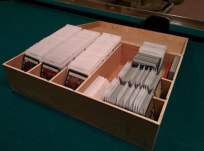 I’m not going to bore you with the organizational details, but I will say it’s suits my needs perfectly. The empty row is intentional, and will be used some day, when I get around to picking up the last three expansions to the game (if, for no other reason, a sense of completeness).