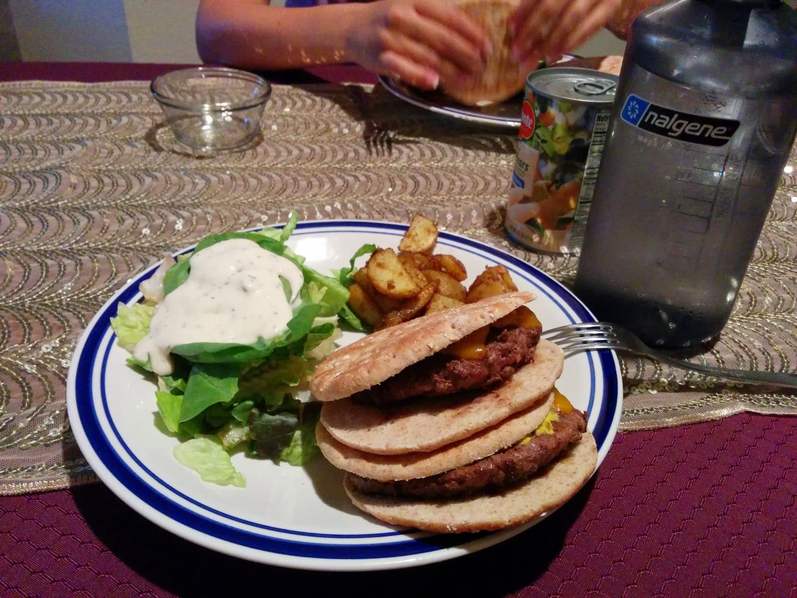 4. Skinnybun Hamburgers, Potatoes, and a way-too-much-Caesar Salad