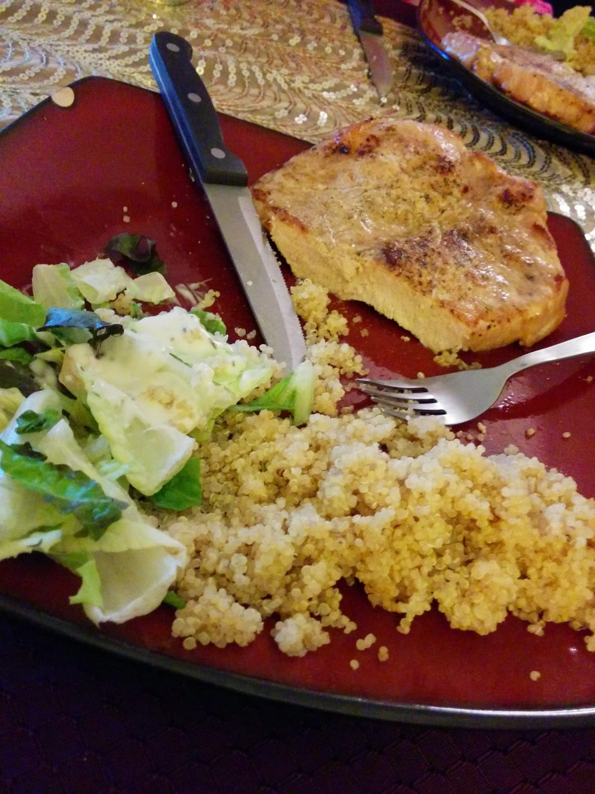 3. Pork Chop, Quinoa, and a way-too-much-Caesar Salad