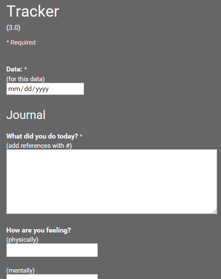 The Life Tracker 3.0 is still hosted on Google Scripts & Google Spreadsheets. It utilizes a Google Form for input. Given all these facts, though, I was still surprisingly successful. My old code read like “take this thing from this exact spot on the form and and put it on this exact spot on the spreadsheet”. My new code is broken down into many functional blocks - only the first and last of which have anything to do with Google Forms or Google Spreadsheets. Everything in between is self-contained. I could easily port the middle (vast majority of the program) to another platform.