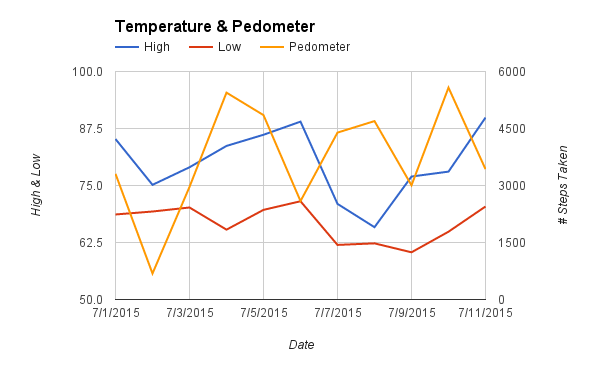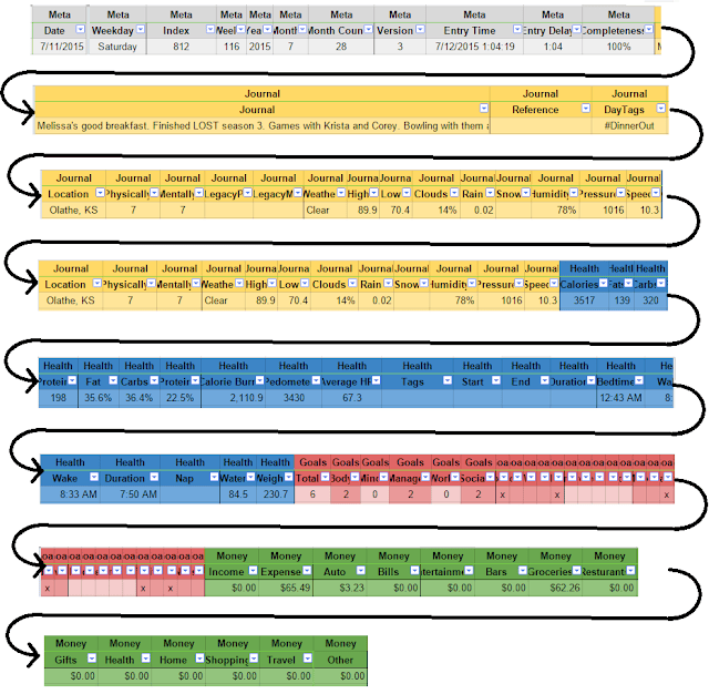 This has been a massive success. I used to pull up 5 apps to do my data input. Now I’m using two apps. Soon I’ll be down to one. My scripts automatically pull my heart rate, weight, pedometer, estimated caloric burn, and any exercise information from their respective apps on my phone. From a different source, I am automatically pulling in the weather. My code will soon be capable of pulling Nutrition information as well.