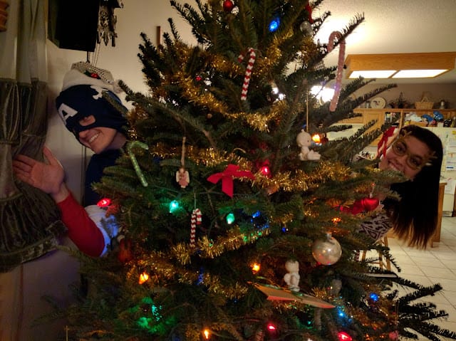 Melissa and I* posing for Christmas.