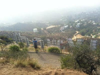 - We hiked the Hollywood sign… ended up behind it somehow. The fog makes this picture not do justice for how beautiful Los Angeles is. Also worth noting: LA is more to the right.