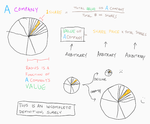Okay, cool, but what determines the value of a company? From what I can gather, the value is just “what people are willing to pay for each share” times the total number of shares. So, what determines the amount people are willing to pay for each share? Seems like it’s the value of the company. It’s circular logic. The snake is eating its own tail. Or maybe the tail is wagging the dog? I’m not sure, but definitely some tail metaphor should apply.