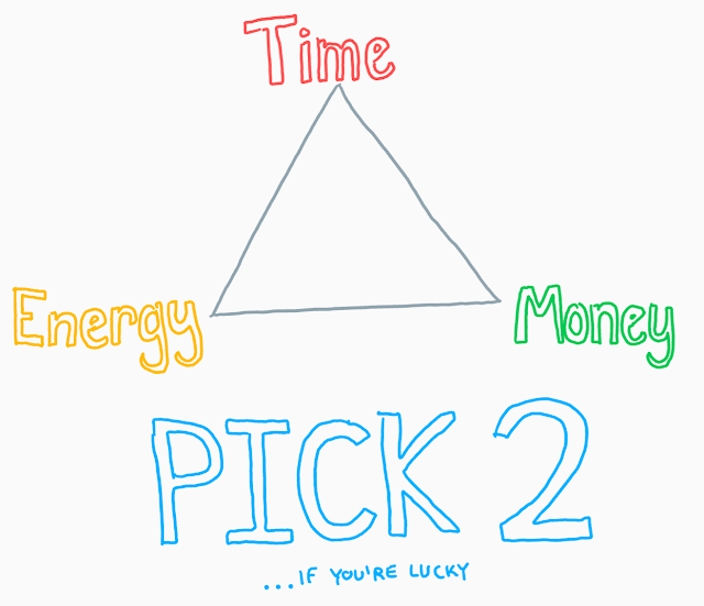 Life seems to me like a series of choices about what to do with your resources. Mostly those resources fall into energy, time, and money.