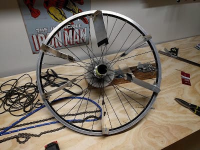 Once I had to settle for a bigger bike wheel, I gave up on submersing the bike wheel into water. Given that water wasn’t a possibility, I went with a friction-based dampener.