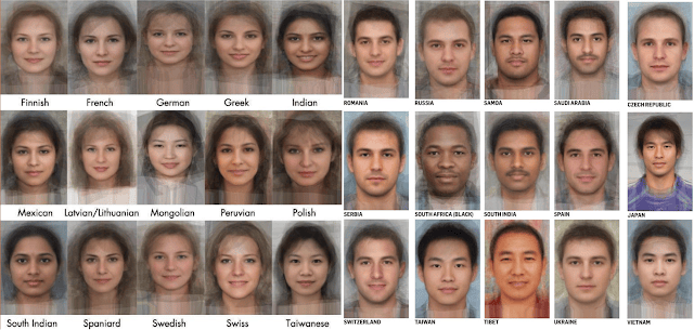 Another thing you might have been told “you’re average-looking”. If you have - that’s also a compliment! Turns out looking “average” is pretty darn good looking. Here’s an “average” group of faces from different countries: