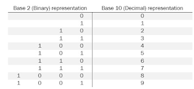 There’s no reason we have to use the symbols 0, 1, 2, 3, 4, 5, 6, 7, 8, and 9. We can count the exact same way just using 0 and 1. That’s how we count inside computers. We call it “binary”.