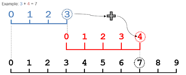 Make a number line for each term, line them up beginning to end, then count to see how far they go. Addition is just repeated counting.