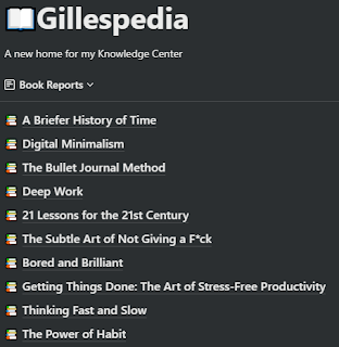 I’d like to thank my local library and the various apps (one, two, three that connect with it for increasing my reading throughput by roughly 95%. Gillespedia has 9 book reports now… sooner or later I’ll figure out a way to make them look good. Right now Gillespedia is basically a link to the public-facing portion of my Notion notes.