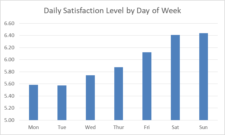 I do get progressively more satisifed with my days as the week goes. I think this result is probably typical. On a related note - tomorrow is Monday.