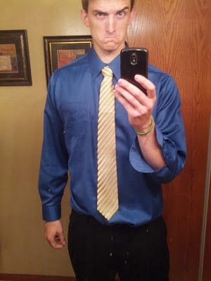 Because I want a picture to show up on the mobile version of the column, I need to post one. Here’s the picture I sent to Melissa when I first tried on my usher’s shirt and tie for Amy’s wedding: