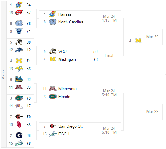 Google’s Coverage of march madness has been stellar. This is a screencap of the “March Madness Bracket”: