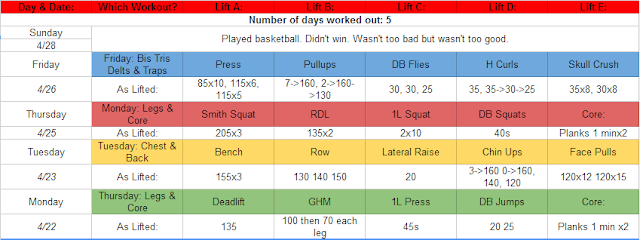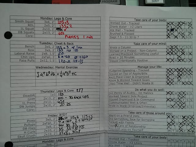 For completeness I feel like I should include a picture of my Workout/Demetri printout from last week: