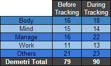 The Demetri List is nothing new. I’ve actually been doing it on and off for a couple of years now. What’s interesting is the comparison of my performance from before I started tracking everything to now. I’ve lived a (slightly) more disciplined life in the past month. How has that affected things?