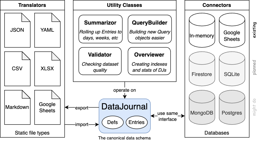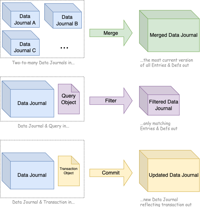 - Data Journal is a set of data shapes (i.e. regular objects) & tools for operating on them